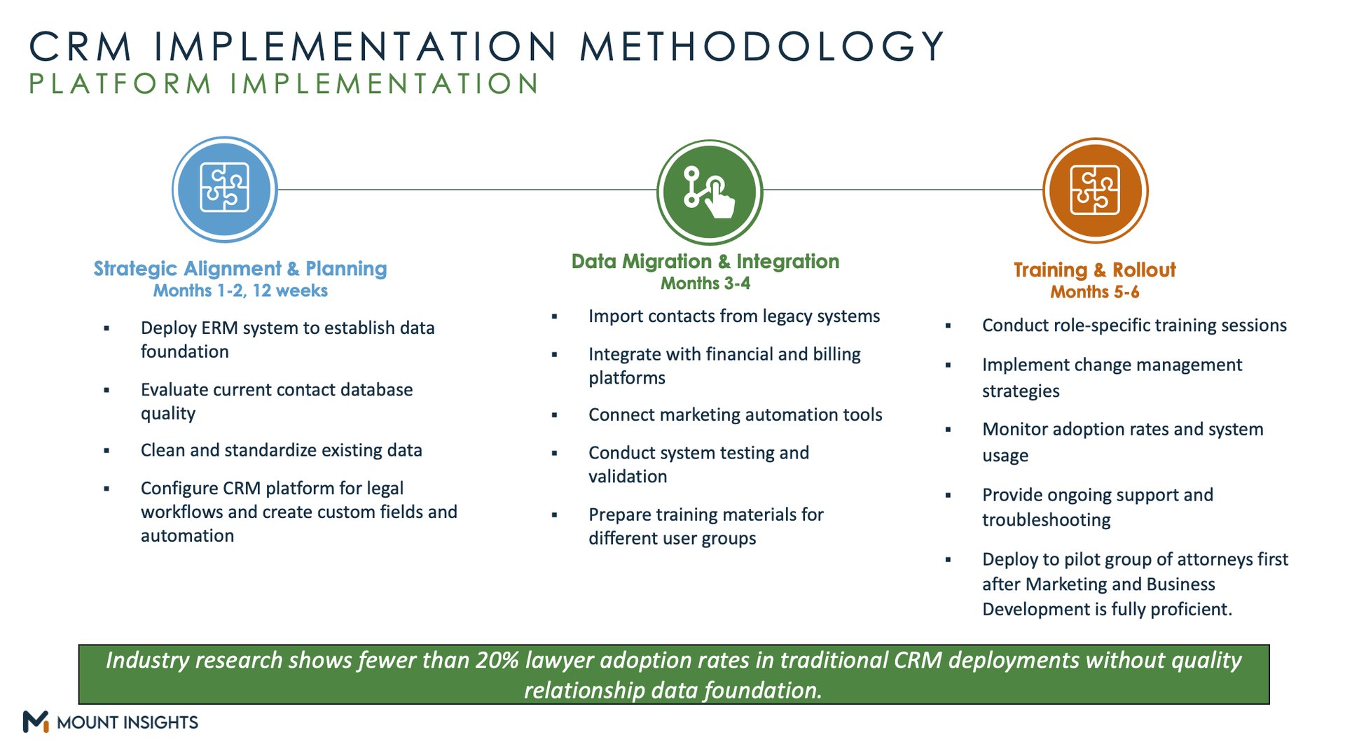 Implementing CRM without ERM represents a continuation of failed strategies that have historically plagued law firm client relationship management. Based on experience across numerous implementations, CRM systems built on poor data often fail regardless of platform selection. Attorney adoption depends largely on data accuracy, and automated data capture represents the only scalable solution to the industry's persistent data challenges.
